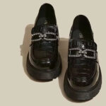 Dit model is een ware samensmelting van elegantie en moderniteit en brengt een grote klassieker terug met een vleugje karakter. Het krokodilleneffect voegt een luxueuze dimensie toe, terwijl de glinsterende ketting een kostbaar accent aan de schoen geeft.