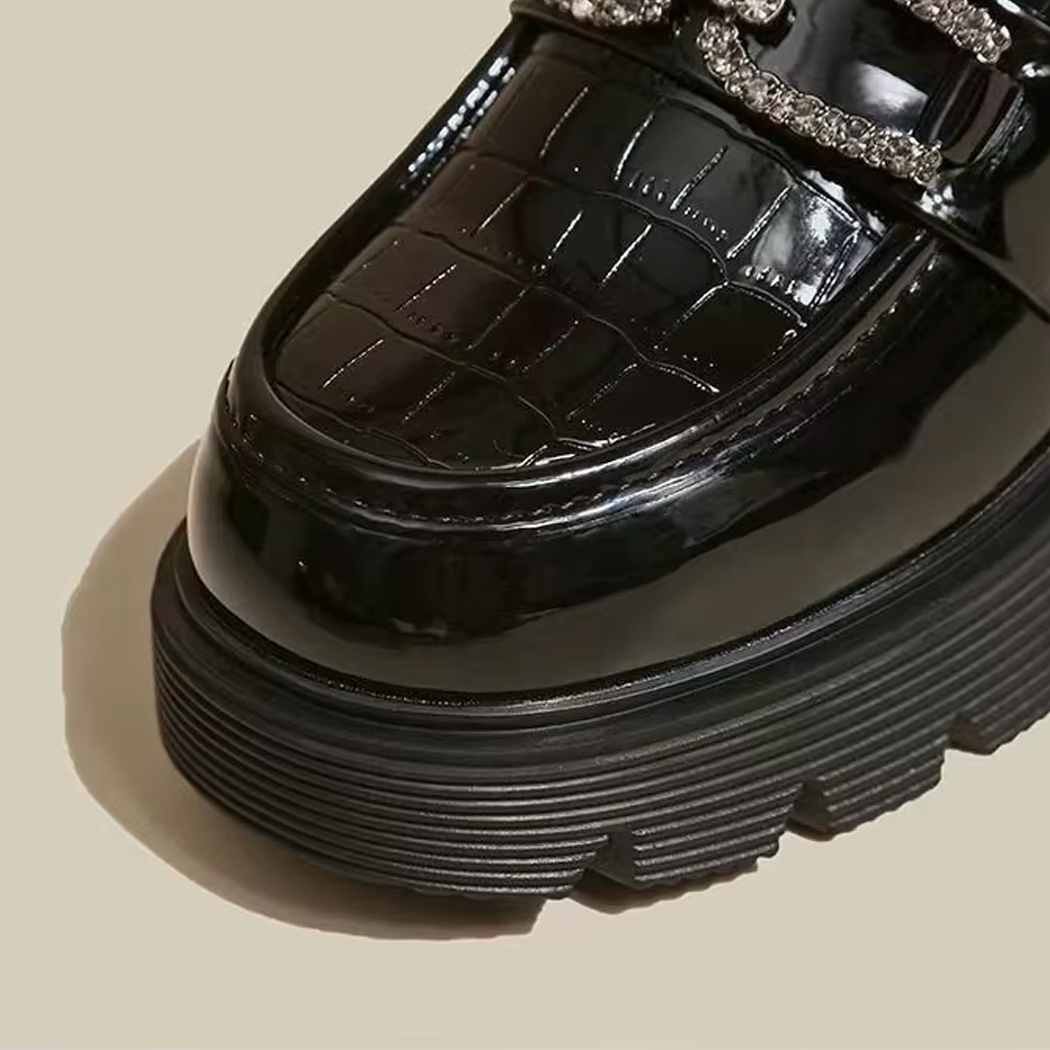 De afwerking met krokodilleneffect en de met strass-steentjes versierde ketting geven elke outfit een vleugje verfijning. Maak een stijlstatement met deze mocassins.