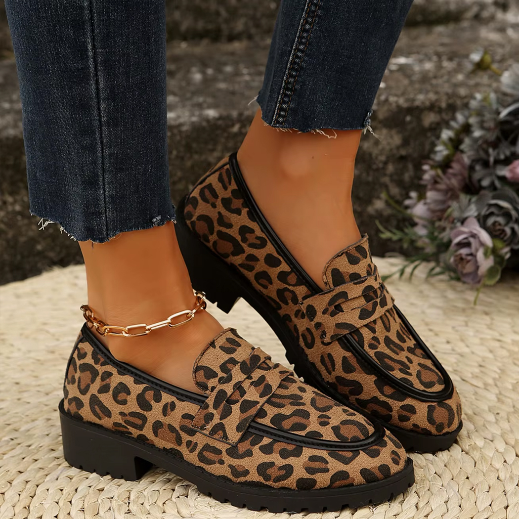 Durf wild elegant te zijn met deze loafer met luipaardhak, een must-have voor fashionista’s die op zoek zijn naar karakter.