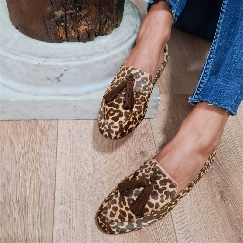 “Deze platte schoenen met kwastjes en luipaardprint voor dames zijn gedurfde, modieuze schoenen die een unieke stijl toevoegen aan elke outfit. Ze zijn kleurrijk en trendy!