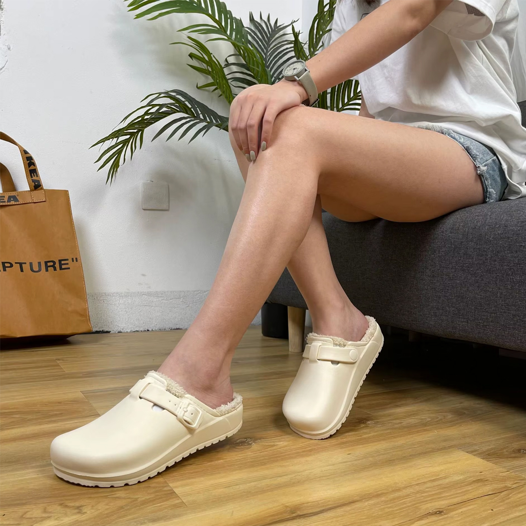 Deze klomp is gemaakt van synthetisch leer en heeft een volledig gevoerde binnenkant voor een zacht gevoel bij elke stap. Hij is gemakkelijk aan te trekken en houdt je voeten warm. De dikke EVA kunststof zool is antislip en geeft uitstekende grip.